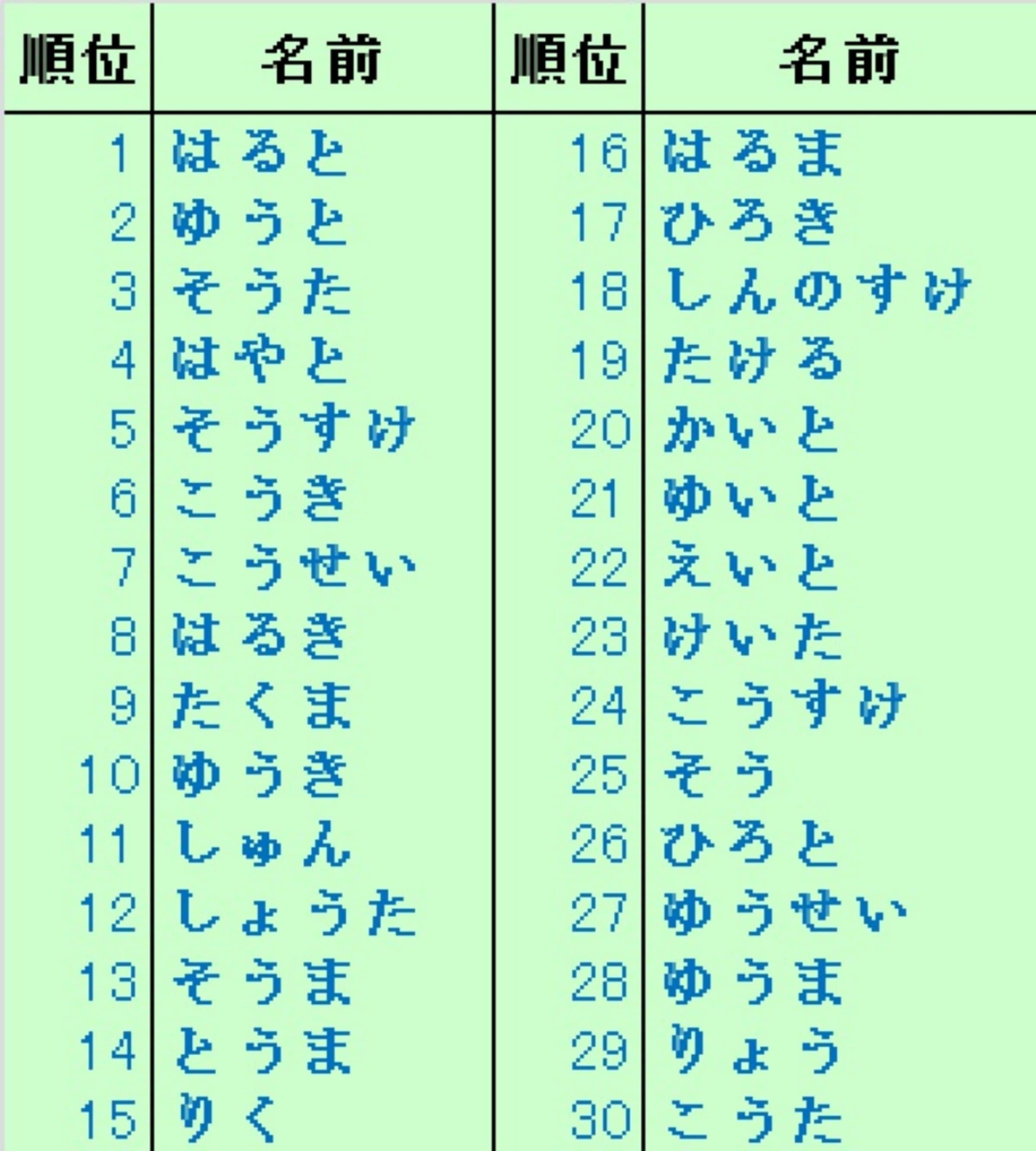 2015年 男の子の名前ランキングTOP30赤ちゃんの命名・名づけAll About。