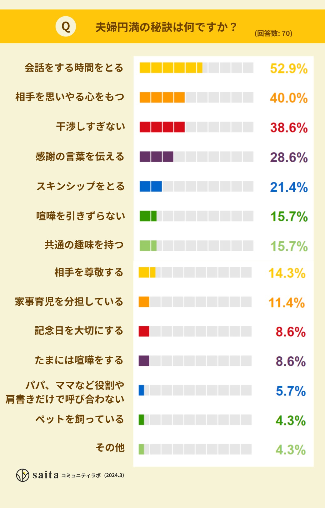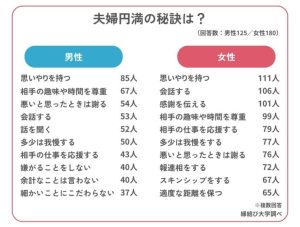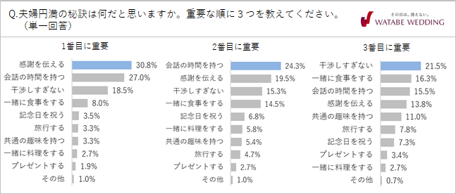 既婚者に聞いた「夫婦円満の秘訣」トップ3、「感謝の想いを言葉にする」「話し合いを大事にする」ともう1つは?マイナビニュース。