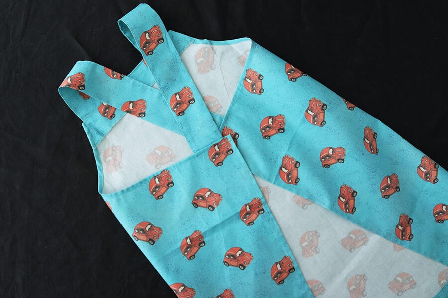 子供用エプロンの作り方 110・120・130・140サイズ かぶるだけで簡単着脱型紙なしで作れますキッズエプロン。