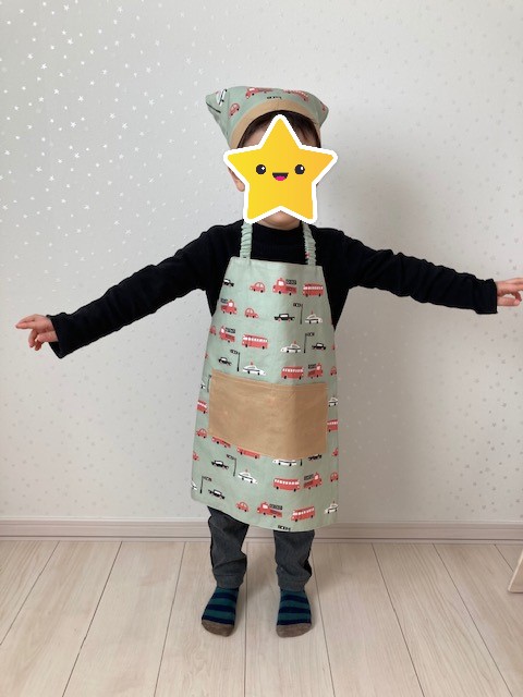 キッズ エプロン ハンドメイド 子供用エプロンの作り方 90~100サイズ かぶるだけで簡単着脱。