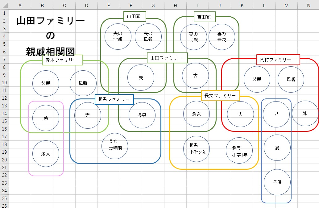 親戚相関図 家系・親族 関係「ExcelとWordで簡単に作成」わかりやすいシンプルな無料テンプレート王の嗜み。