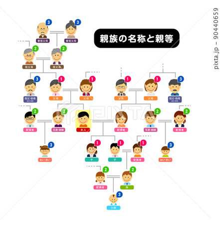 家系図イラスト親族の名称 呼び方 と親等のイラスト素材90440659- PIXTA。