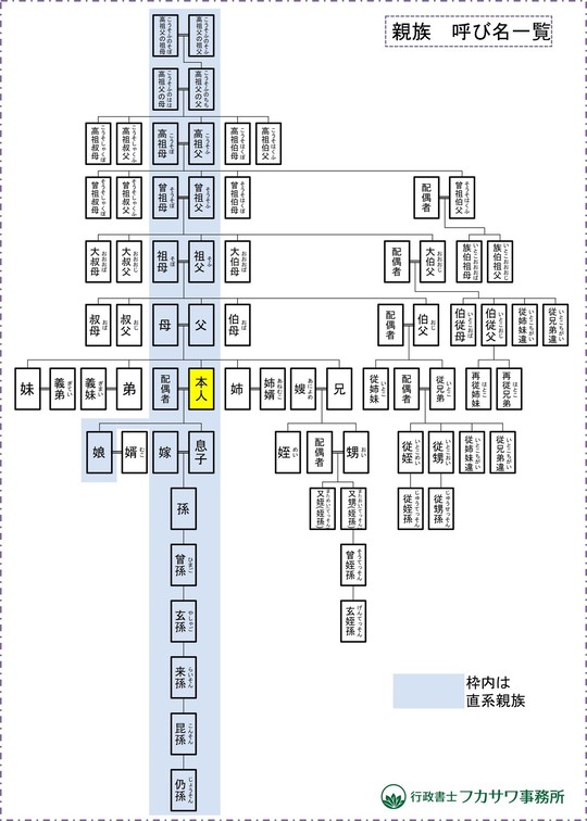 親族呼び名一覧 - 家系図作成・戸籍調査のご依頼なら行政書士フカサワ事務所。