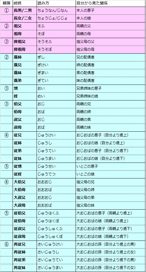 自分から見た親族の呼び方の全まとめ はとこ?こうそふ?らいそん?。