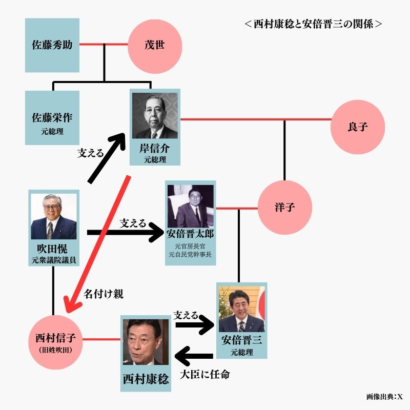 相関図 西村康稔と安倍晋三は親戚ではないが深い繋がり!義父・吹田愰と3世代にわたる関係って本当?政治家のはなし。