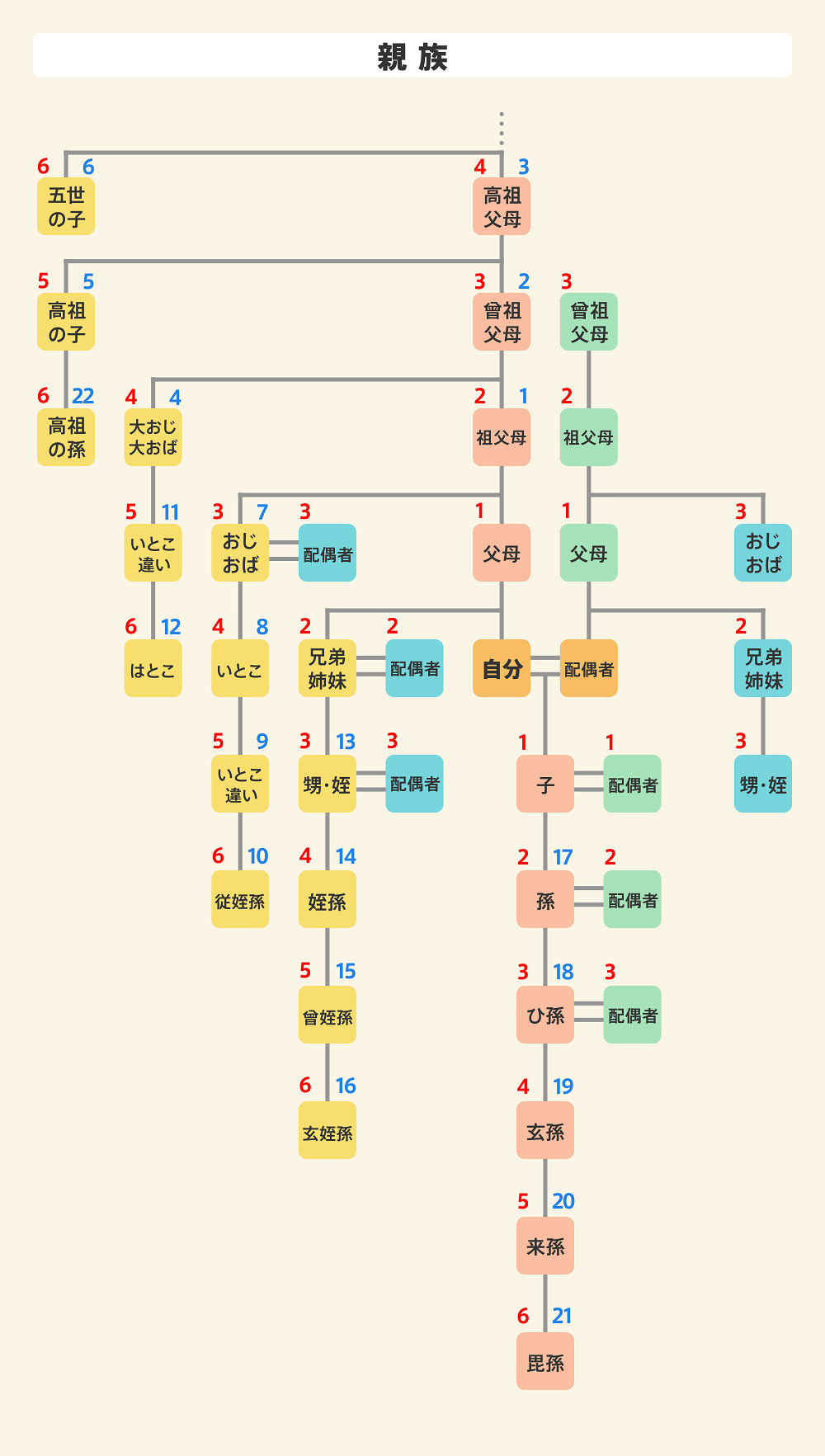 親族の数え方マスター!○親等をイラストでわかりやすく解説。
