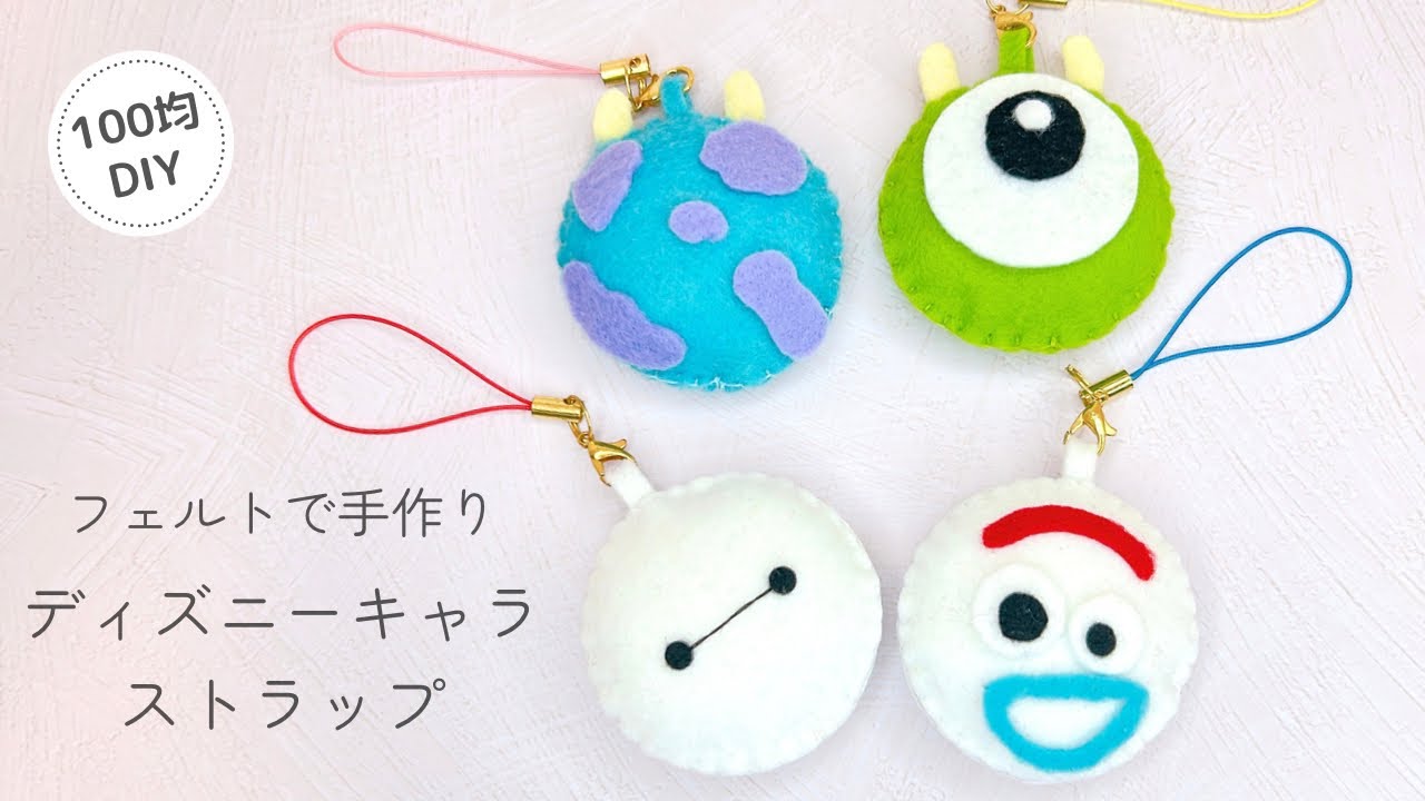 簡単! フェルトで手作りディズニーキャラストラップ 型紙不要 簡単 100均DIY felt handmade craft。