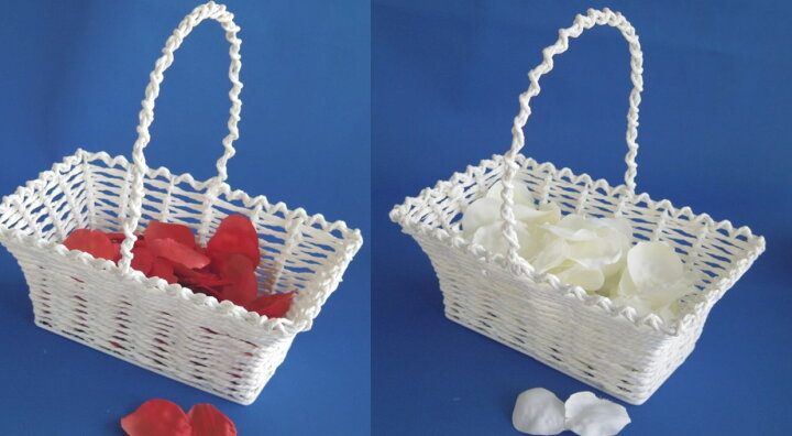楽天市場 手付きホワイト バスケット スクエア 横幅約21cm プチギフト用かご 結婚式 フラワーシャワー フラワーガール カゴ ミニサイズ :Hitomiの幸せデリバリ。