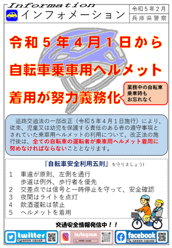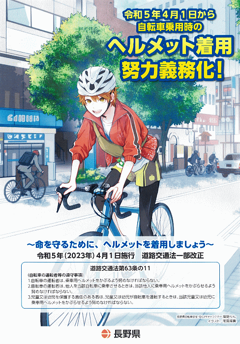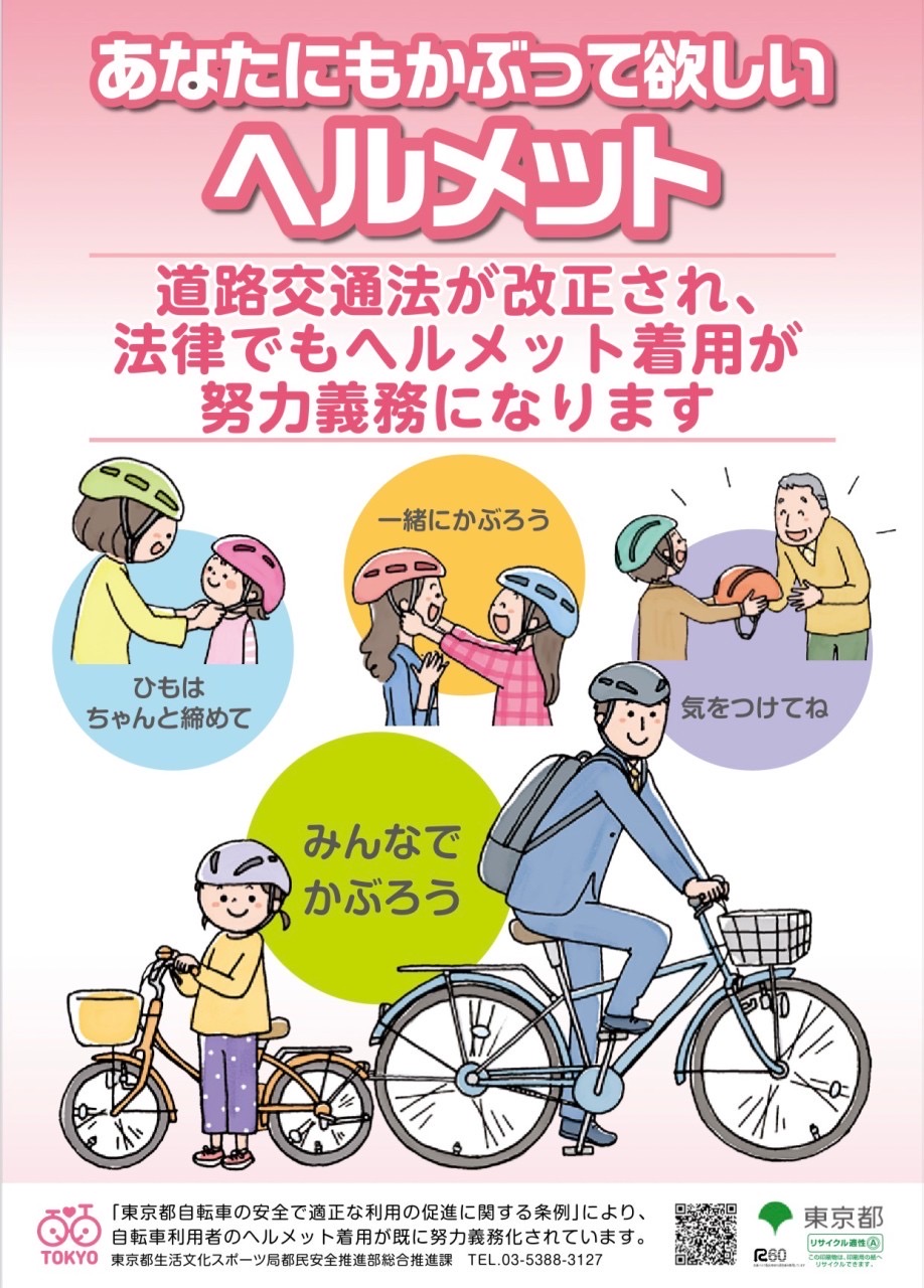 4月1日から道路交通法で、自転車利用者の全世代に ヘルメットの着用が 努力義務 となります! : ブログ : 寄り添い力No1!人にやさしいまちづくりを目指します。