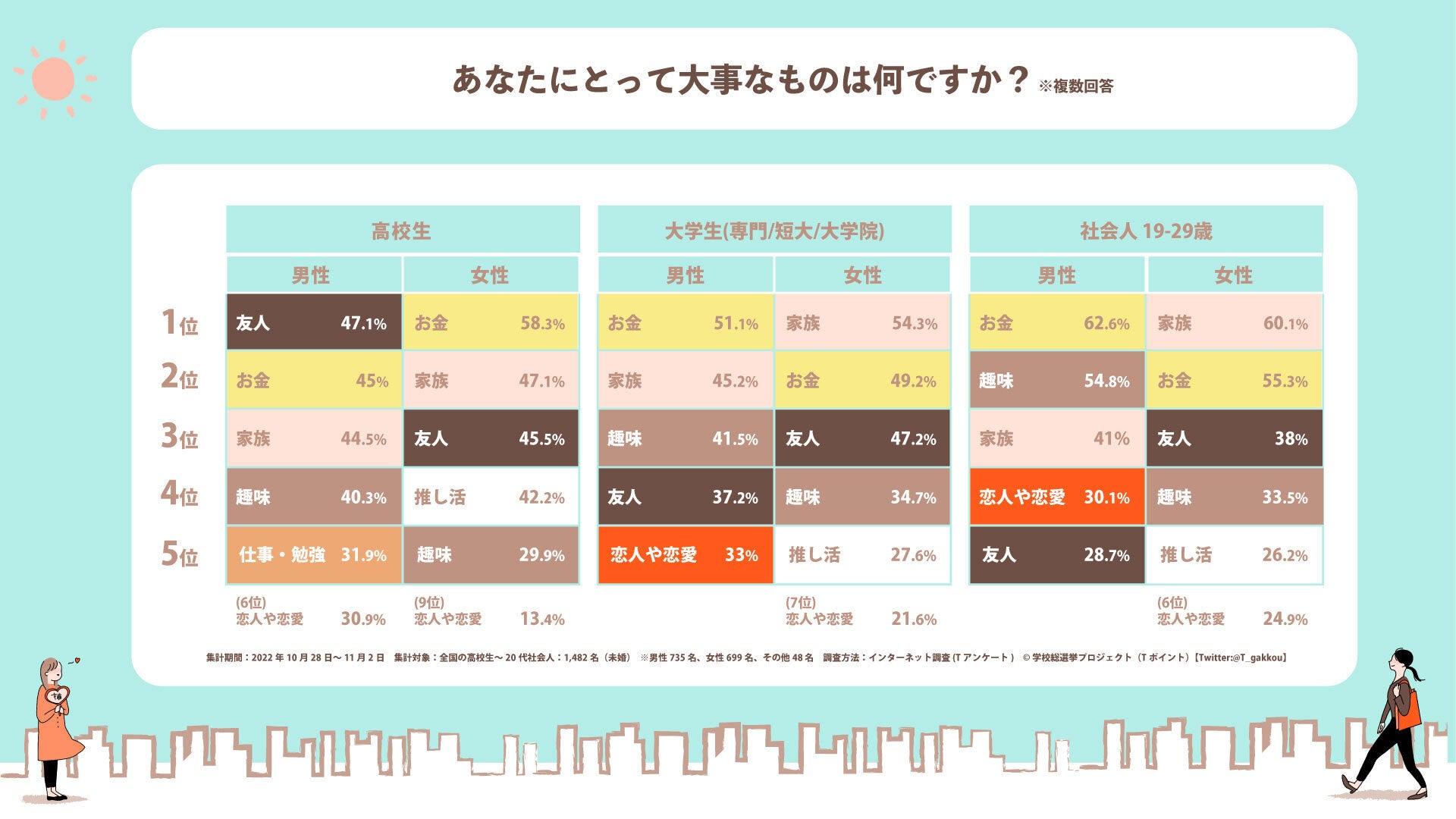 学校総選挙プロジェクト 10代~20代若者の交際未経験率は36.4%。23歳以下の女性では、「恋人・恋愛」よりも「推し活」を優先カルチュア・コンビニエンス・クラブ株式会社のプレスリリース。