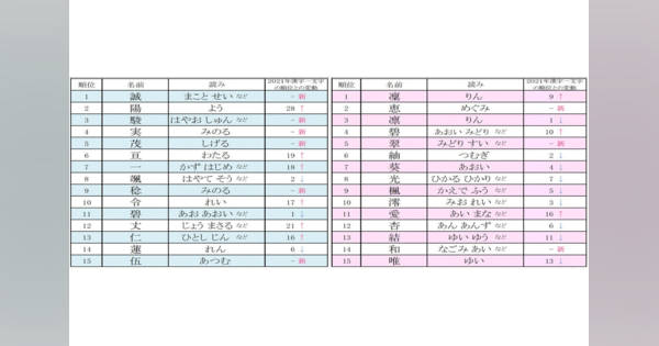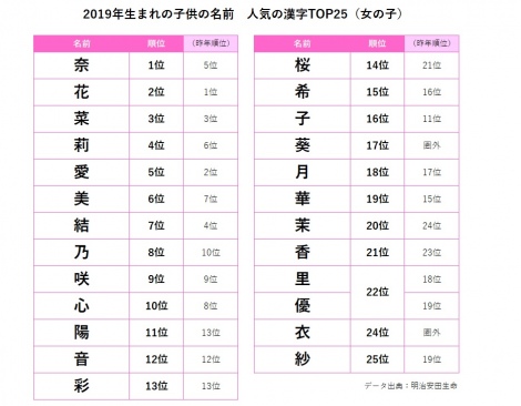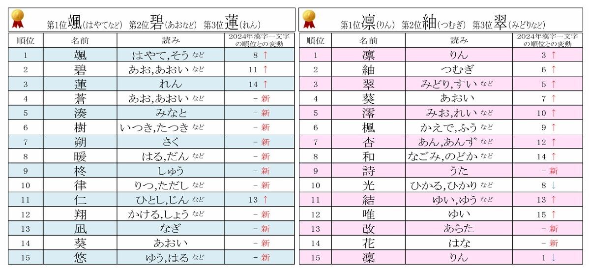 赤ちゃんの名前 2025年人気の漢字一文字の名前ランキング、女の子は「凛ちゃん」が1位に - 男の子は? - ライブドアニュース。
