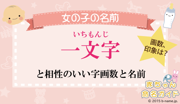 一文字」姓と合う、相性のいい字画の女の子の名前例一覧名前を響きや読みから探す赤ちゃん名前辞典完全無料の子供の名前 決め・名付け支援サイト「赤ちゃん命名ガイド」。