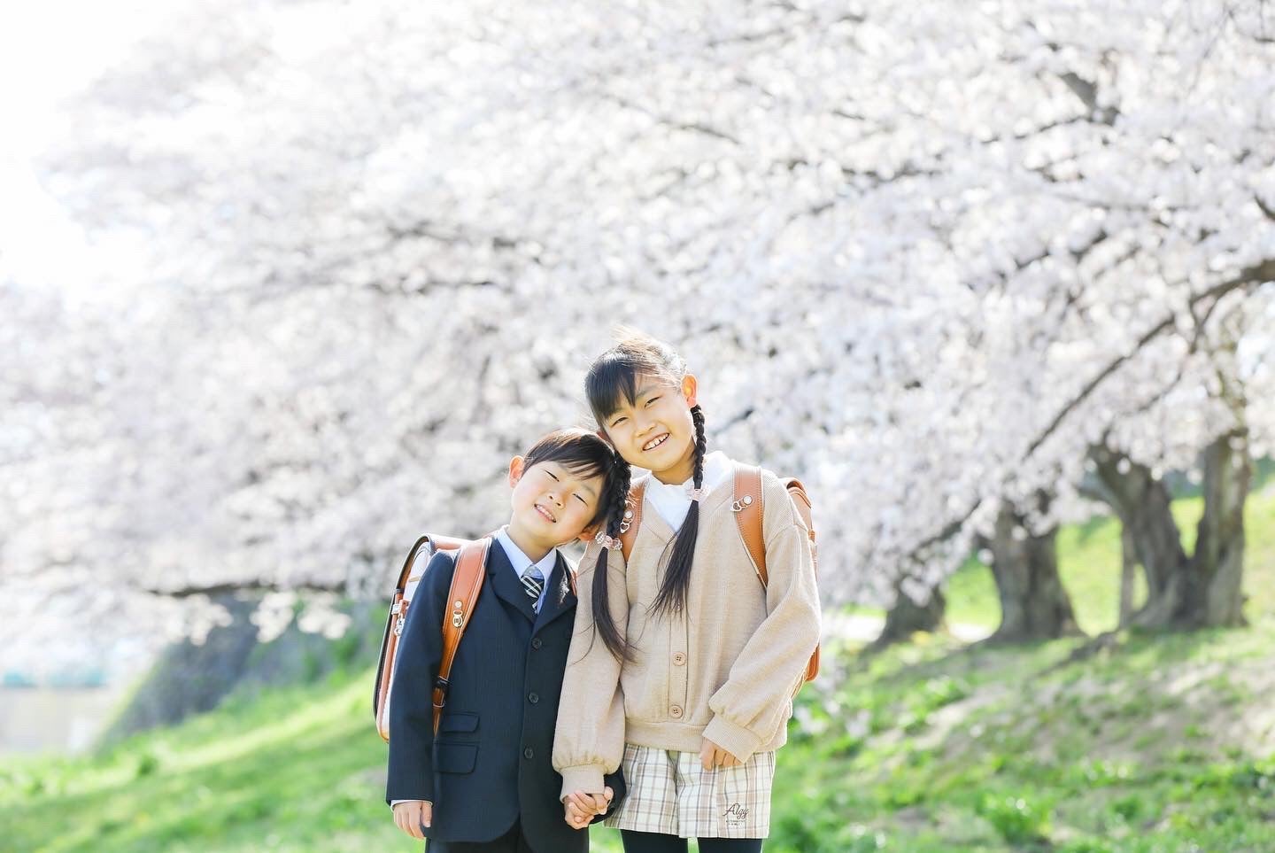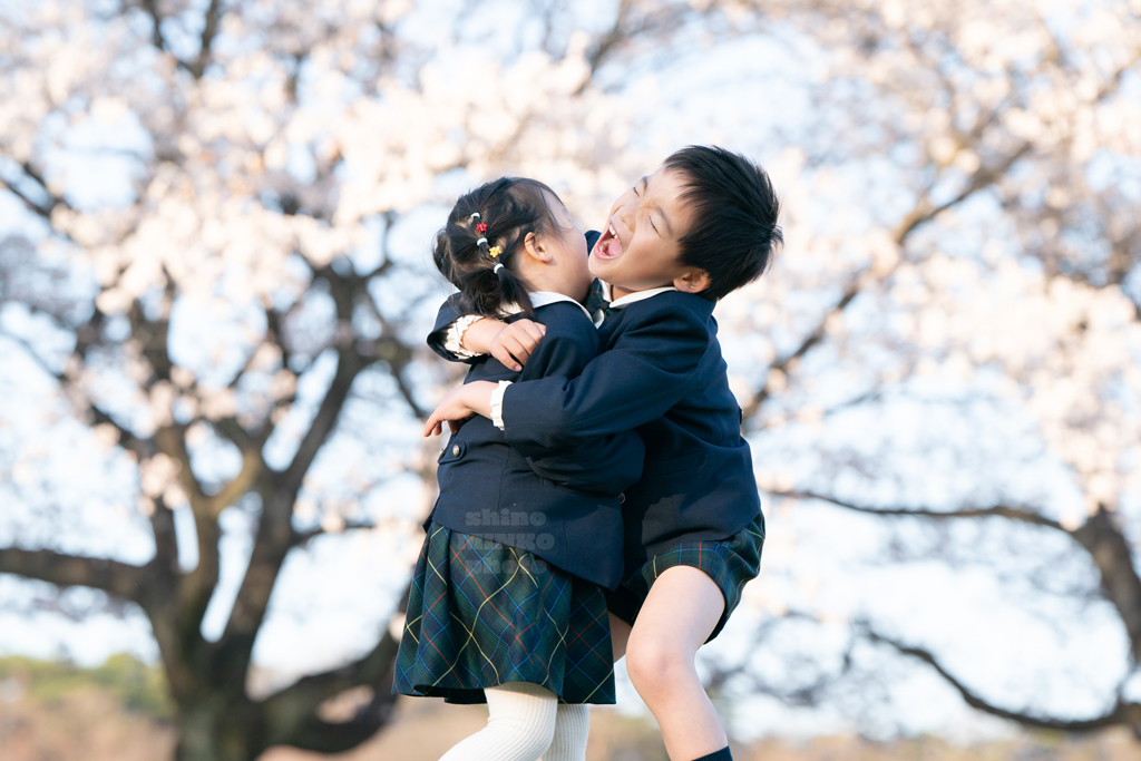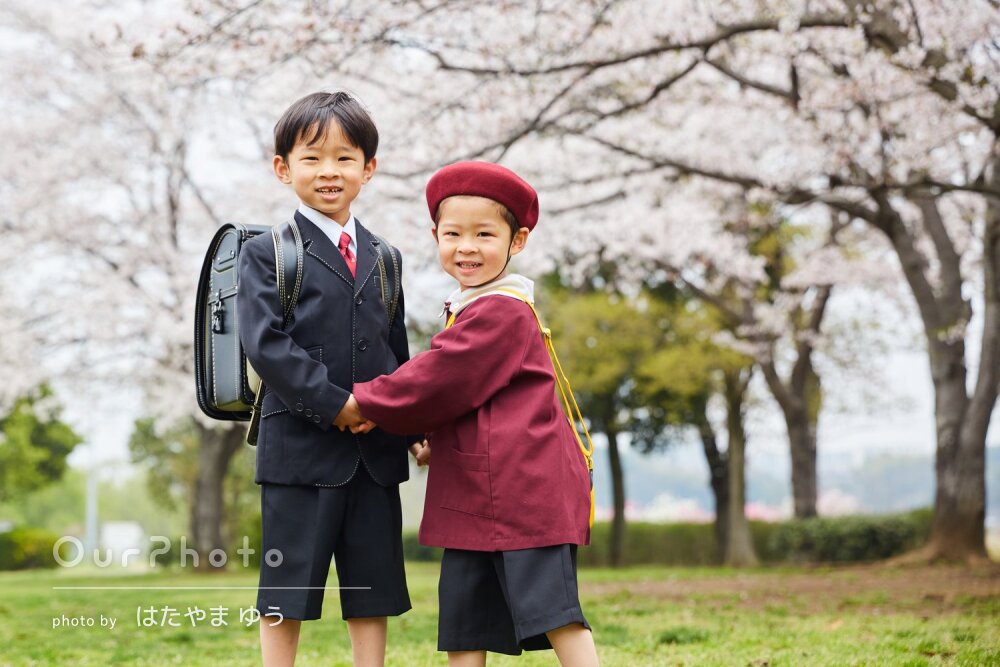 一生の宝物」桜と笑顔いっぱいの兄弟!ランドセル姿で家族写真の撮影OurPhoto アワーフォト。