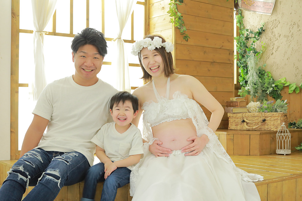 マタニティフォトは家族で撮影もオススメ!詳しく解説!フォトスタジオシャレニー七五三撮影や振袖撮影等記念写真はフォトスタジオシャレニーへ。